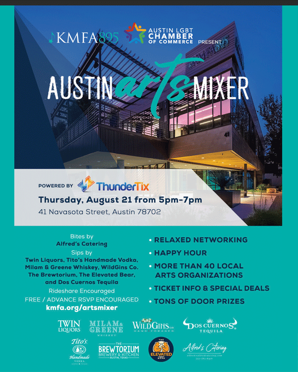 - Aug 21 – Austin Arts Mixer – Join us for the 5th Annual Austin Arts Mixer, a free community event celebrating Austin’s vibrant arts and culture scene.